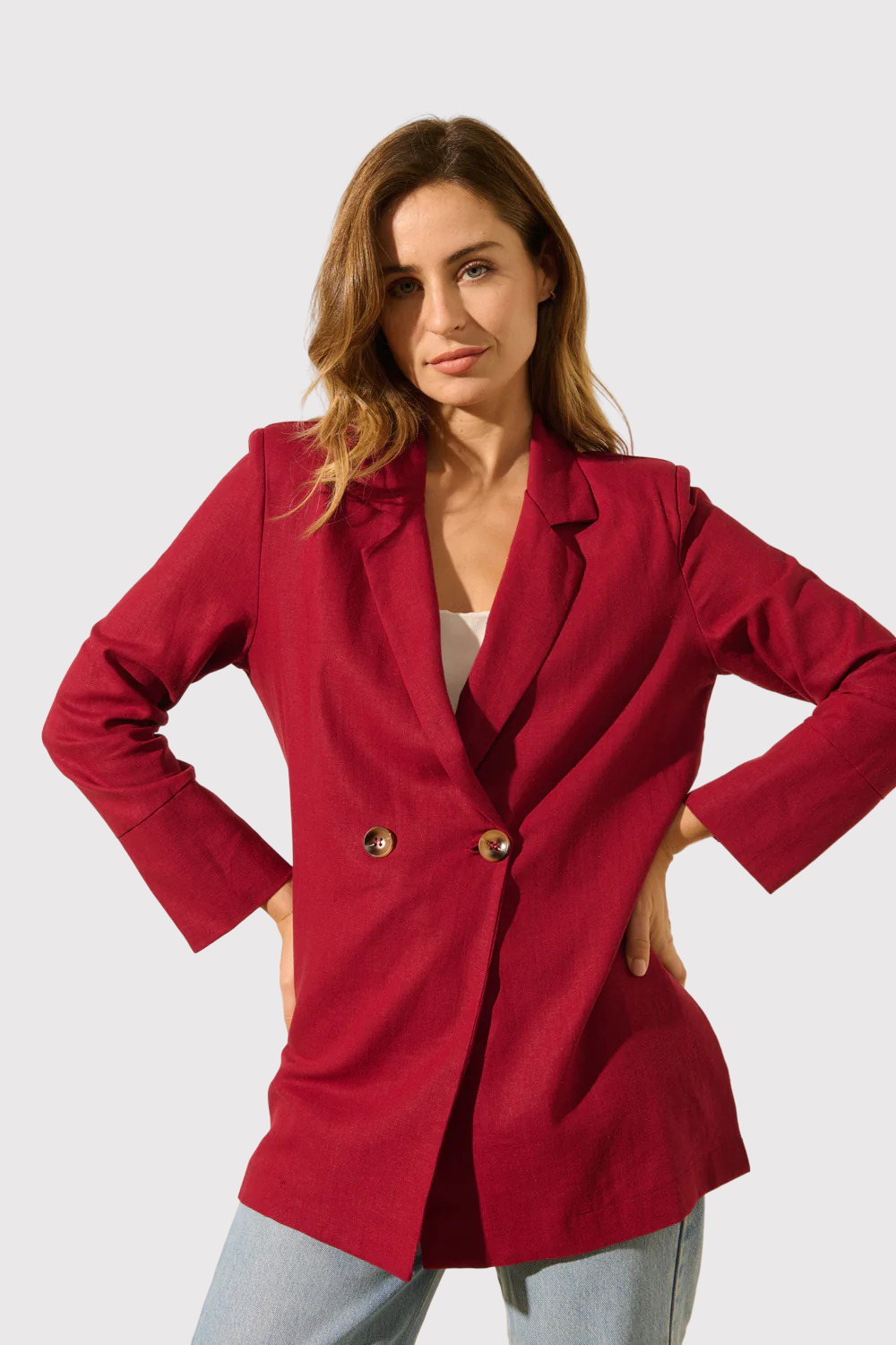 Une veste longue en lin, pour un porté décontracté mais tellement élégant. Un look estival, idéal pour la saison.