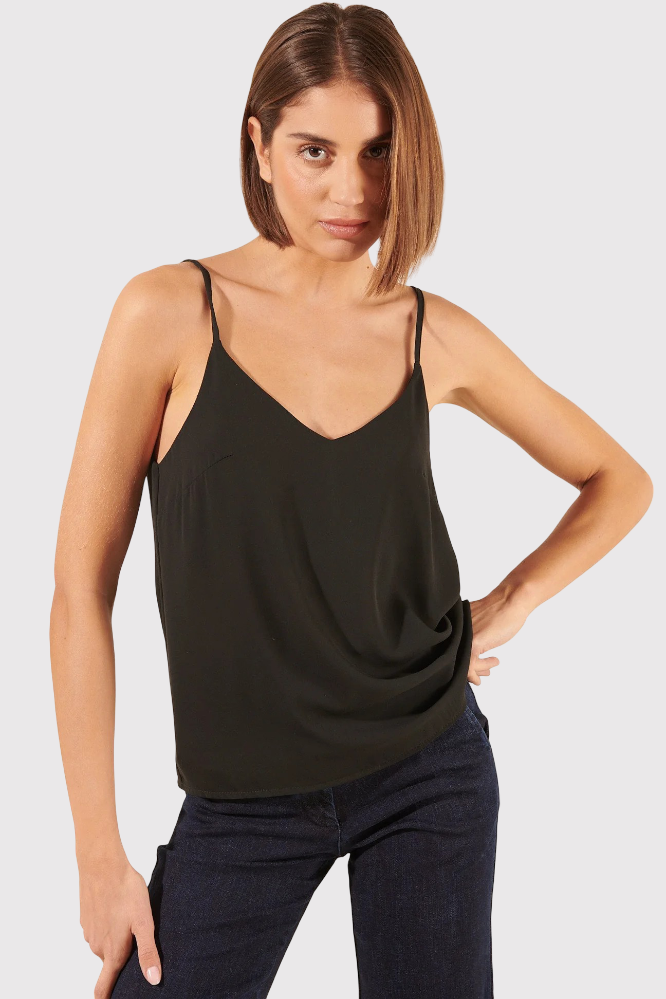 Le top Eros est un modèle avec des bretelles fines, parfait pour les soirées ou pour une tenue chic du quotidien. On adore son décolleté en V et sa coupe qui dévoile subtilement le dos. Très agréable à porter, on le matche avec un pantalon de tailleur ou une jupe pour un style inoubliable !
